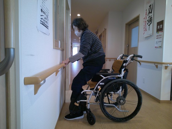 「 イチ、ニ! イチ、ニ!」とリズムに合わせて廊下を歩きます。