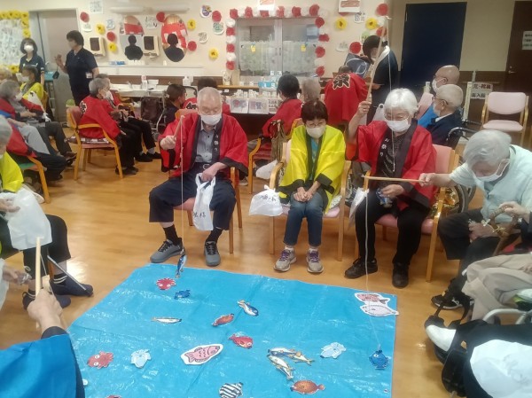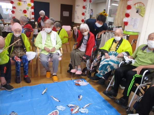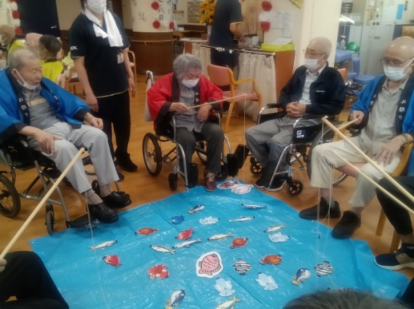 魚釣りゲームでは、慎重に竿を動かして魚を釣り上げ、大漁を喜んでいらっしゃいました。
