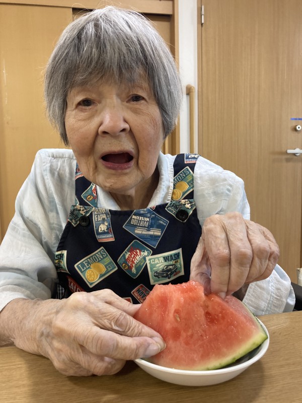 今年のスイカは、かなり甘かった様で「美味しい!美味しい!」と