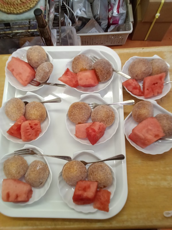 ちなみに、本日のおやつはカステラサンドの日でしたので、スイカとカステラサンドの2つを召し上がって頂きましたよ。
