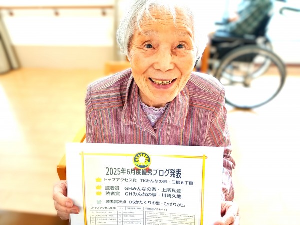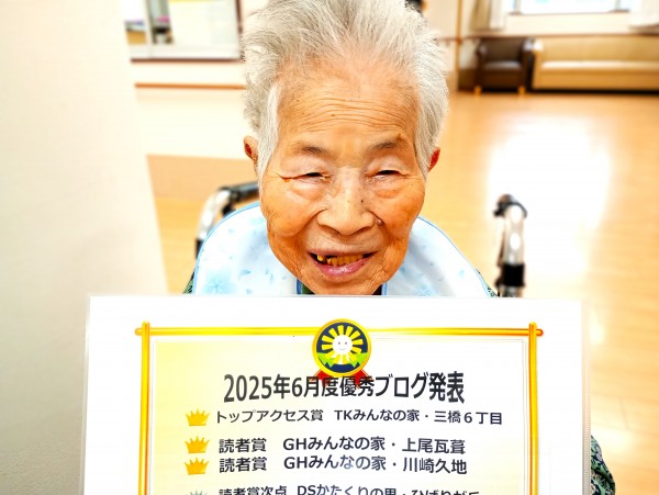 ★☆三橋6丁目のブログTopAccess『トップアクセス賞 』表彰‼6月度優秀ブログ発表‼2025年令和7年✨ 『みんなの家 三橋6丁目 介護ブログ』☆★
