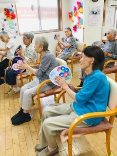 続いては、先日皆さんで作った、素敵なうちわを使って、、、、