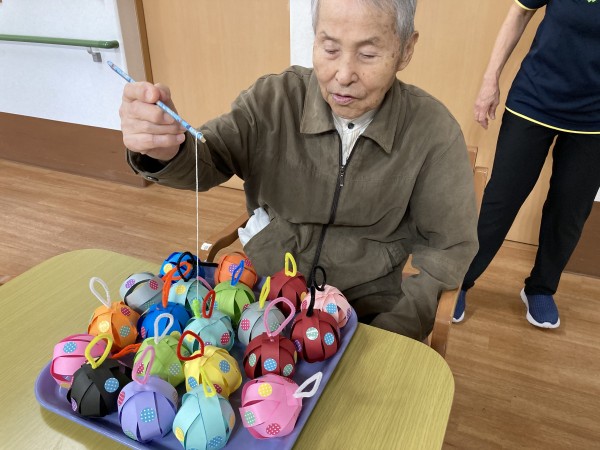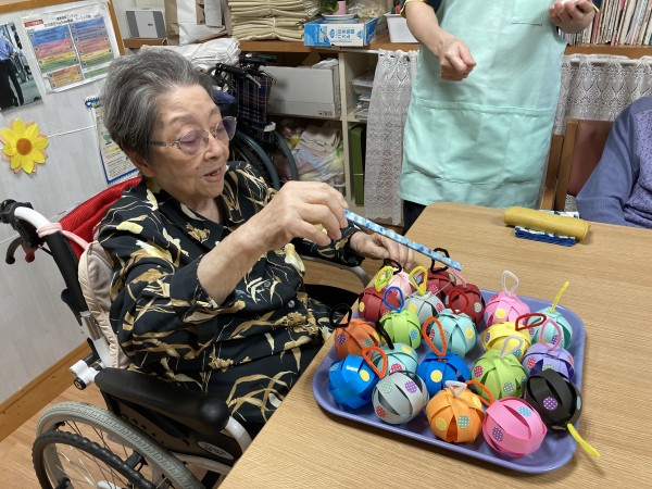 やなかのヨーヨーは職員お手製の紙ヨーヨー