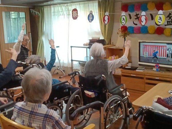 グループホームみんなの家・中野鷺宮で8/7日にリモートで「いきいき盆踊り」を他の施設と一緒に参加しました。