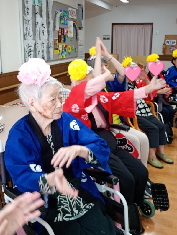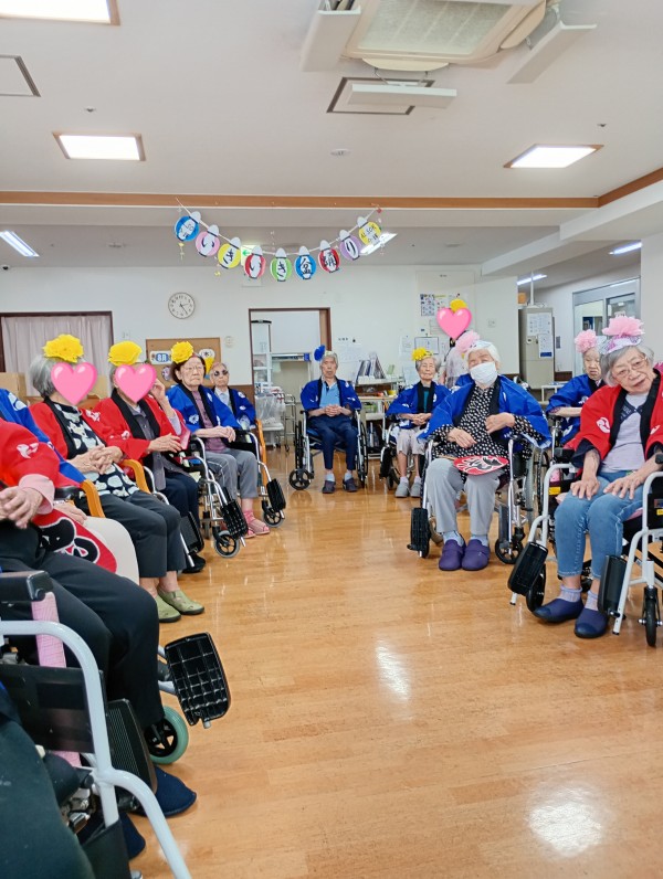 はっぴ姿のご利用者様がこの人数集まると圧巻の美しさですよね!!眩しいまである!(笑)