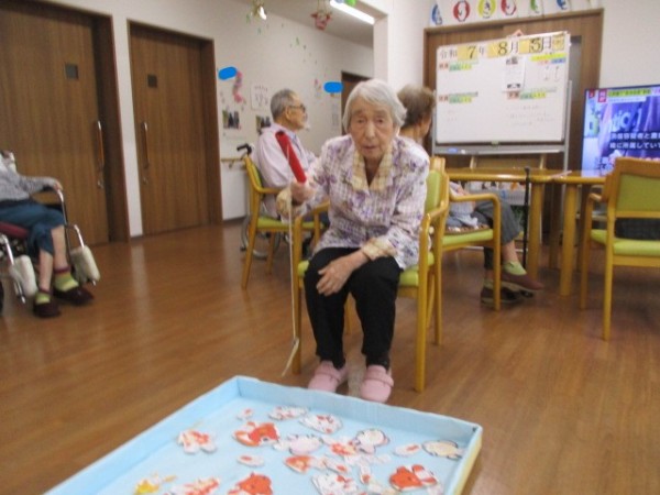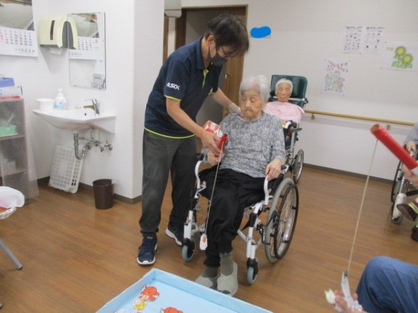 魚釣り????釣りゲームを行いました( ^ω^)・・・ 磁石に引っかけて魚を釣るゲームです。 楽しく参加されておりました。