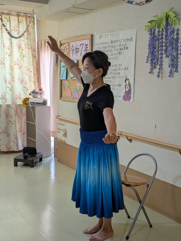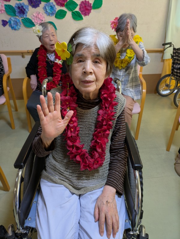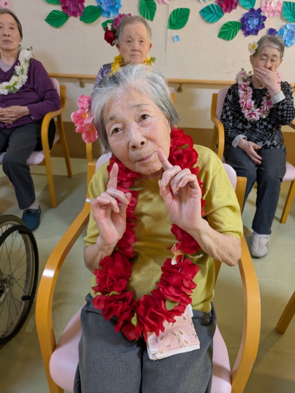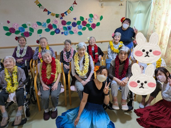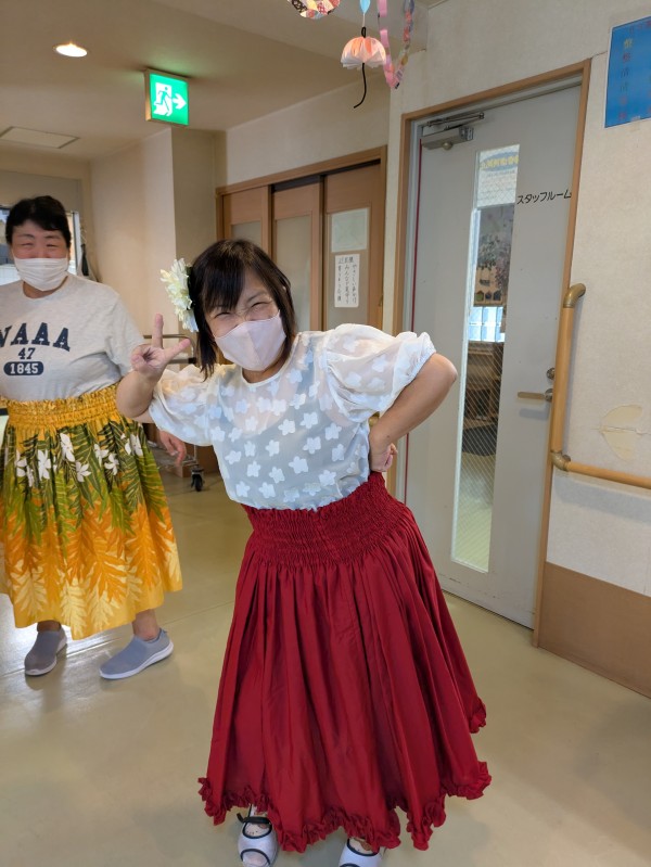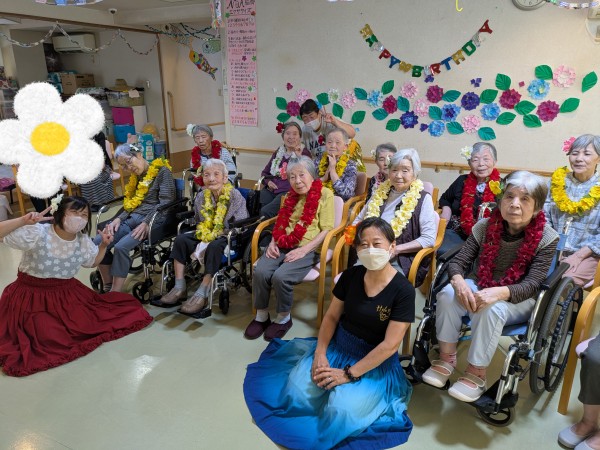 家族会の日、いつも練習している私たちのフラダンスを披露させていただきました。