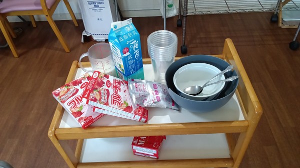 牛乳とフルーチェの素を混ぜてフルーチェを作ります(*^^*)