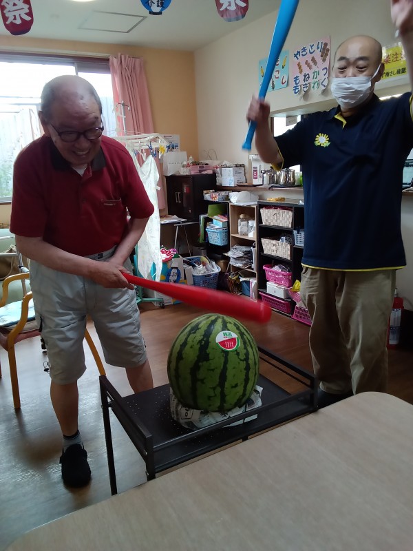 今回は1階のご利用者様のスイカ割りのご様子をお届けいたします!