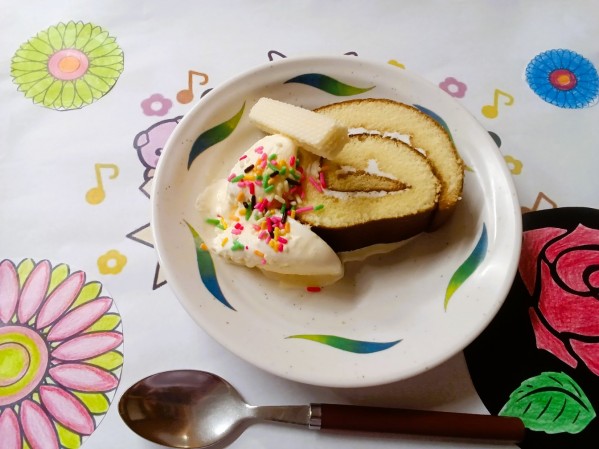 ♡ロールケーキにバニラアイスとウエハースを添えて♡