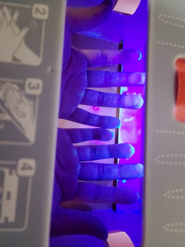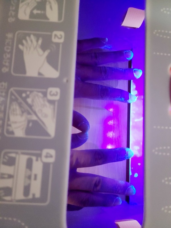 アルコールと手洗い組に分かれてしっかり落ちているかを検証します!