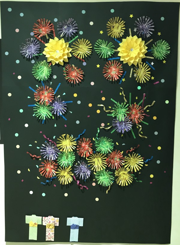 用紙に花火に合ったキラキラのシールを皆様に貼って頂いたりして