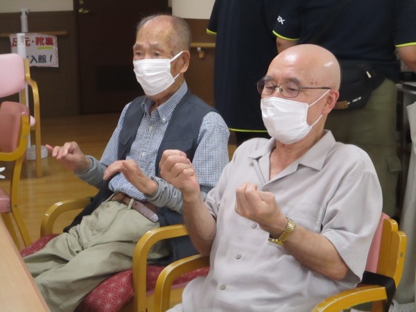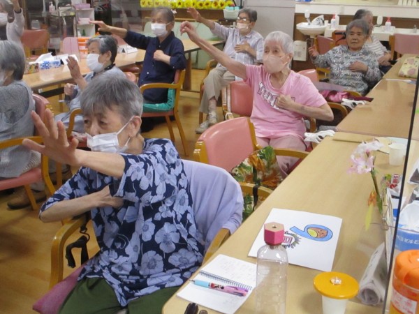 エクササイズの中には、指先を使った細かい動きや、左右違う動作を同時に行う動きなど、脳トレ要素も満載。最初は少し戸惑う場面もありましたが、繰り返すうちにスムーズに!「できた!」という達成感の笑顔がたくさん見られました。