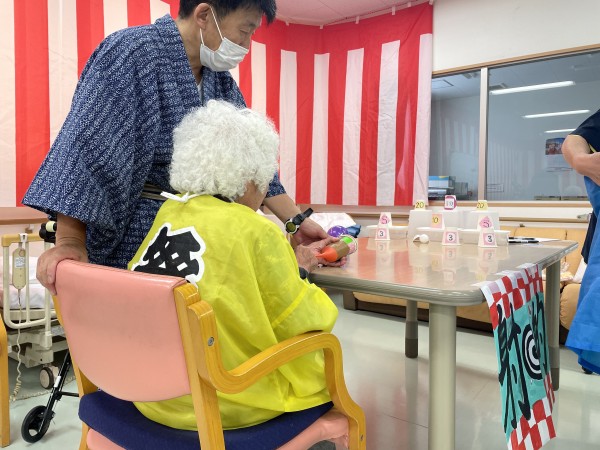 ヨーヨー釣りも気に入った色のヨーヨーを狙い、こよりがちぎれないように気を付けながら釣って頂きました。
