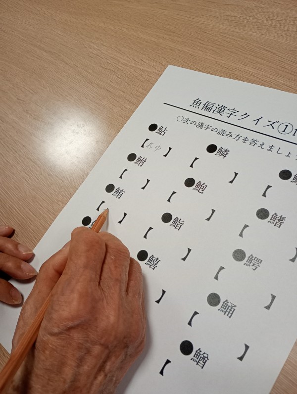 朝早く起きて来られたご利用者様に漢字クイズのプリントをお渡ししたところ…!