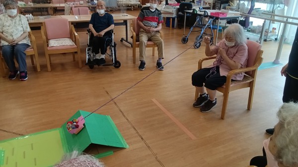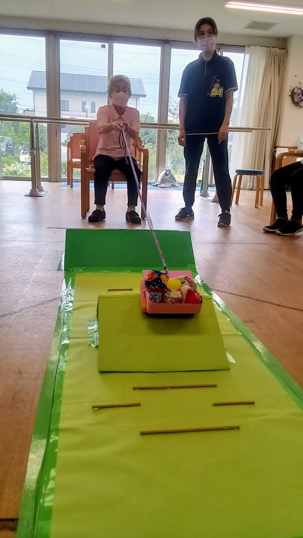 一生懸命、必死にお手玉拾う職員ヾ(≧▽≦*)o