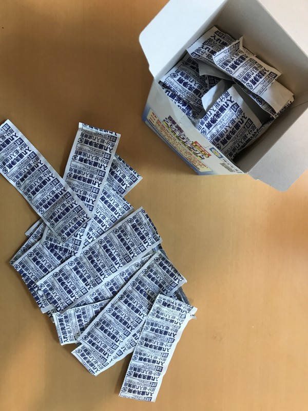 入れ歯洗浄剤をせっせと一つずつにちぎっております。