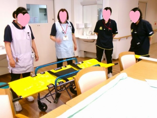 今回は車椅子に人は座らず職員には車椅子を持つ感覚を確認して頂きました。