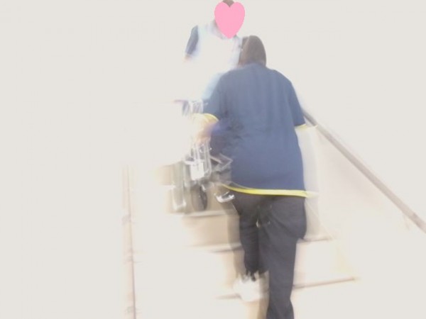車椅子の方を階段で上の階へ避難させるための訓練です。