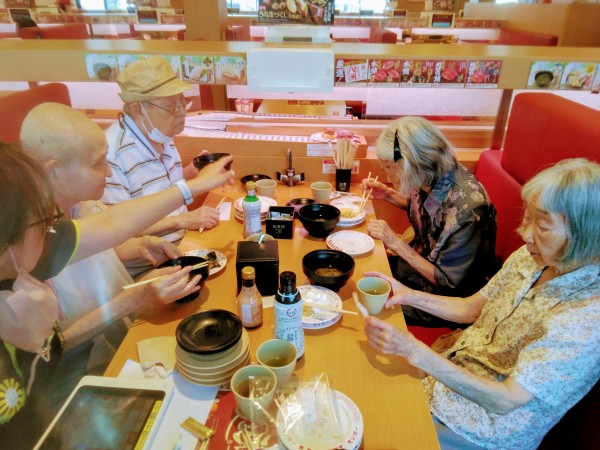 7月の外出レクは「回転寿司」を食べに行きました♬