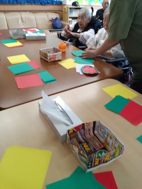 今回は折り紙ボランティアの紹介です。先月から新しく折紙を教えてくださるボランティアの方が来てくださっています。