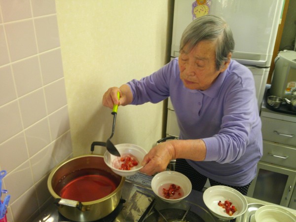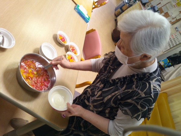 ご利用者様にお手伝いして頂き美味しいフルーツポンチが出来ました!(^^)!