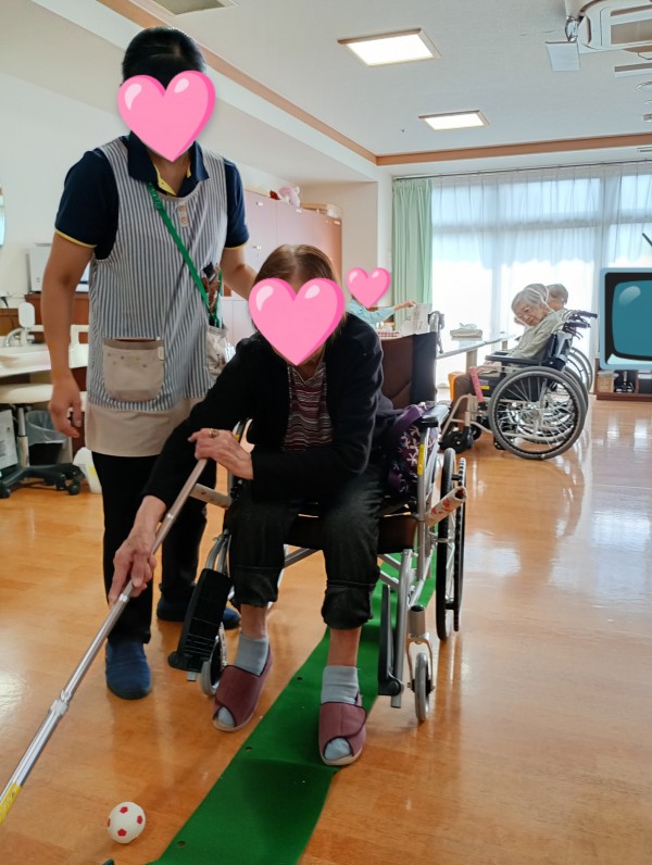 杖ゴルフ!!ご利用者様も見ている職員も楽しいレクリェーションです!!