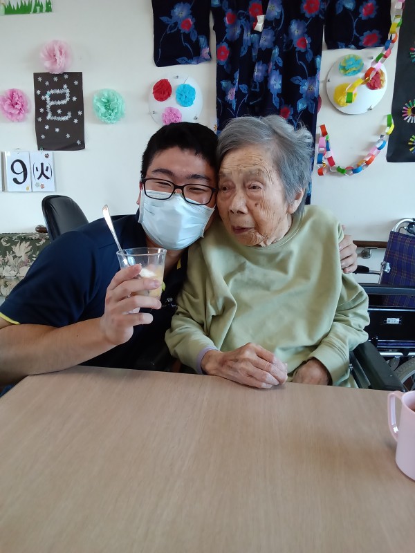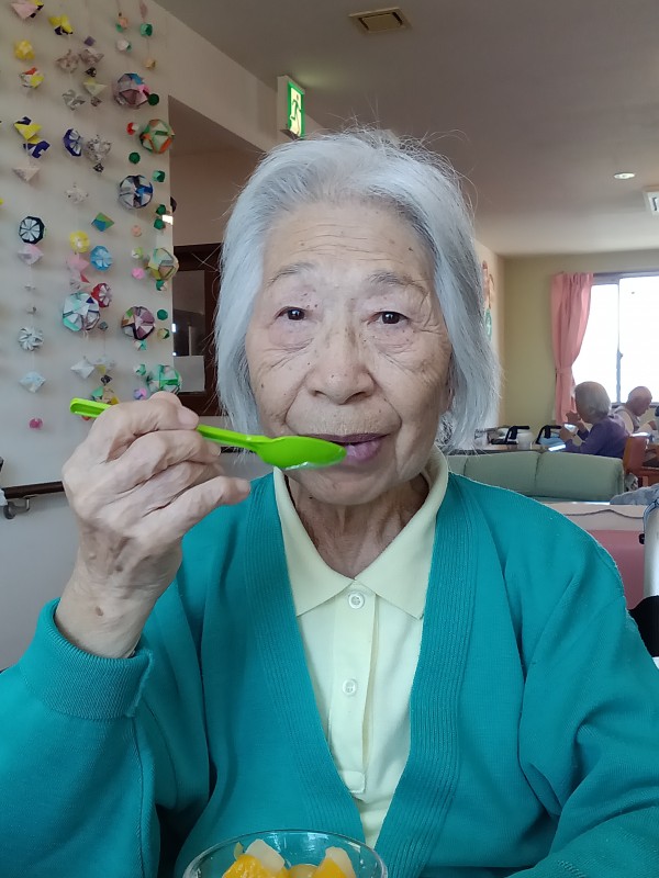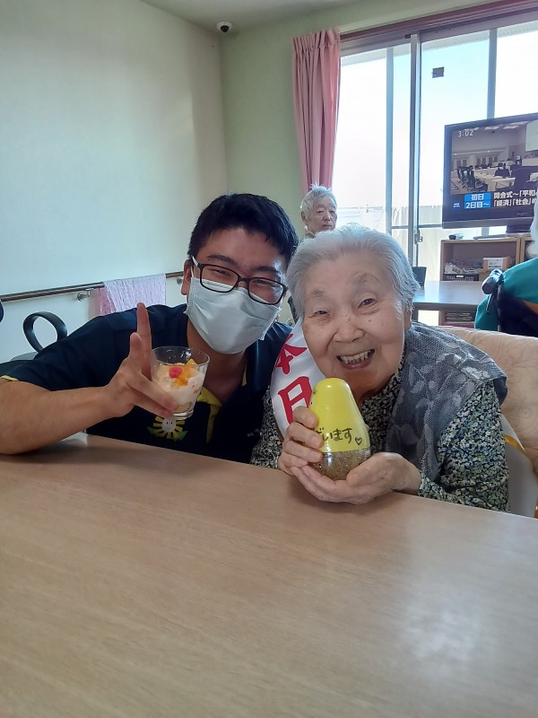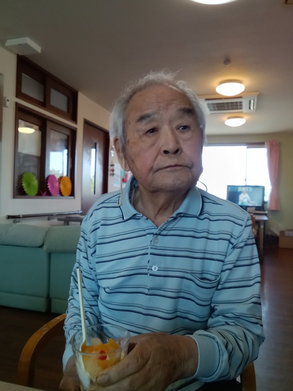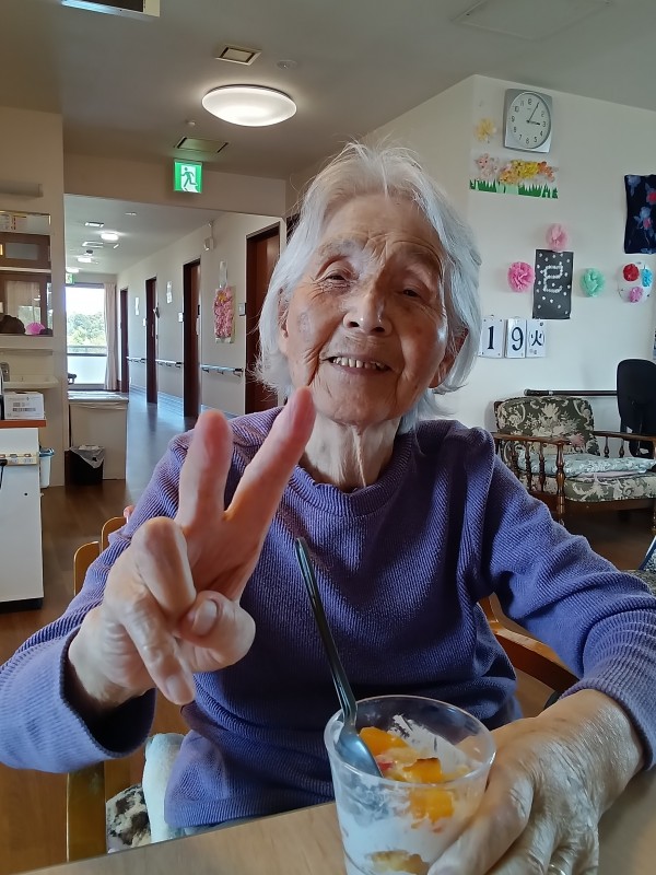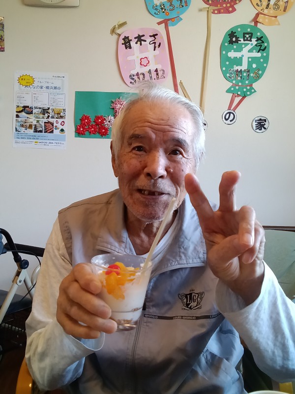 お祝いした後はおやつにスタッフ手作りのフルーツパフェをご提供させていただきました!