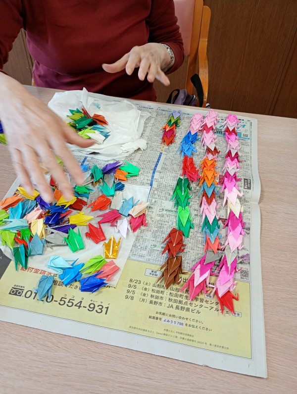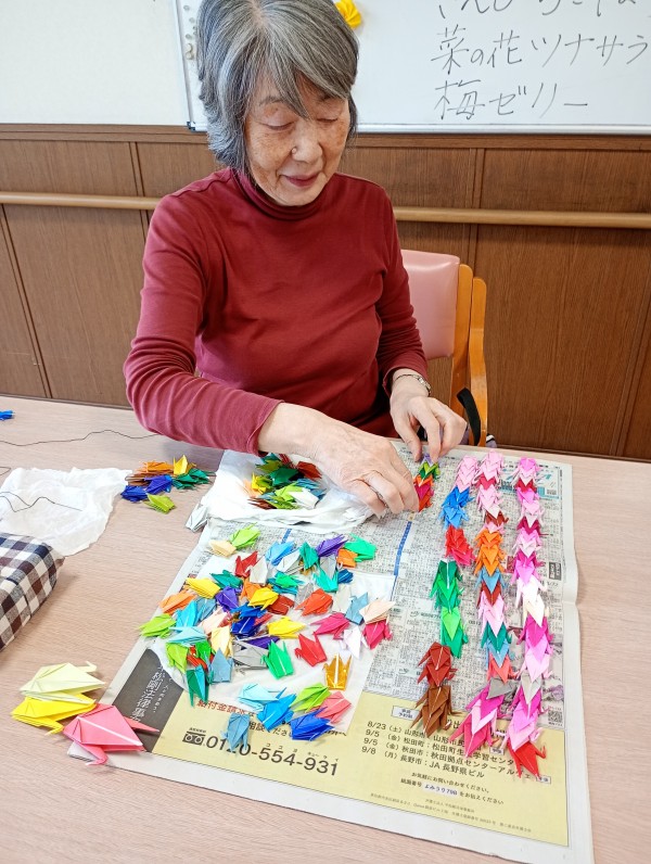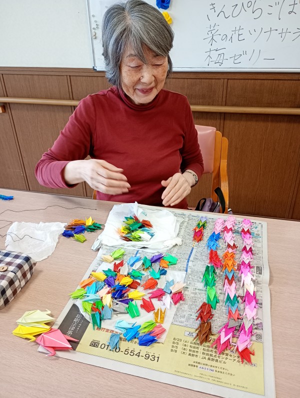 本日は折り鶴を1本の糸に通しておりました!!連なれ~~鶴っっ♪♪