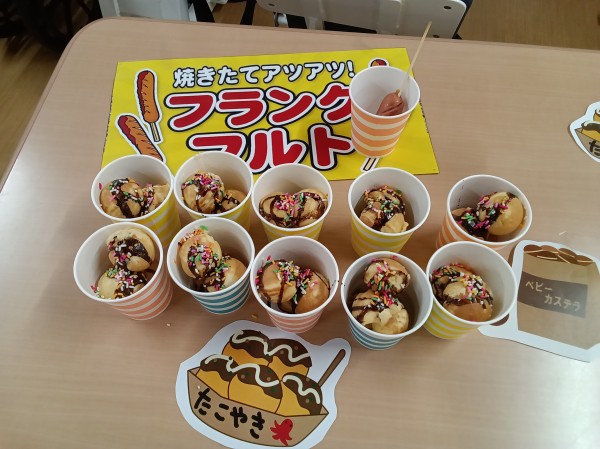 フランクフルトやたこ焼き、ベビーカステラを召し上がっていただきました!(^^)