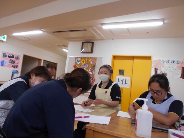 今回は、通報者、消火者、誘導者とスタッフで担当を決め、避難しましたが、実際には夜間は各フロアに職員が1名です。自分がもしもの日の勤務になっても慌てずに行動できるようにしていきたいと思いました。