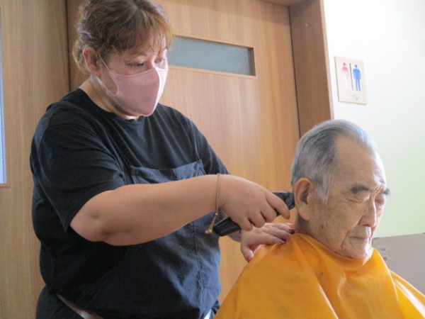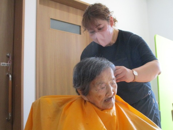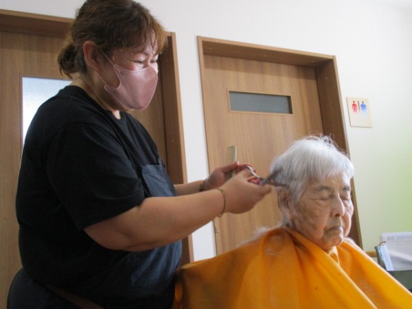 今日は2階で訪問美容の方による髪の毛をカットされる日です。 そのご様子をお知らせいたします!!
