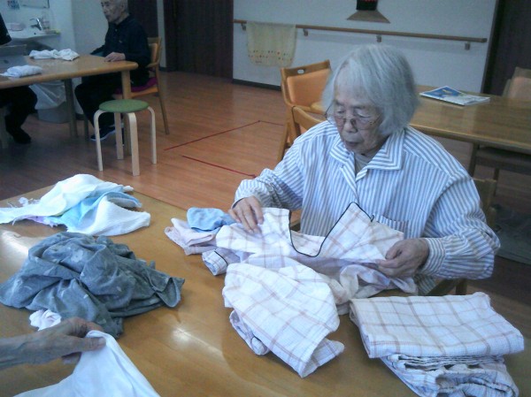 1階・お手伝い(お洗濯物畳み)のご様子です☆