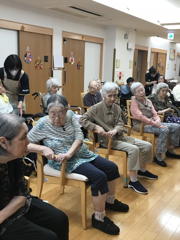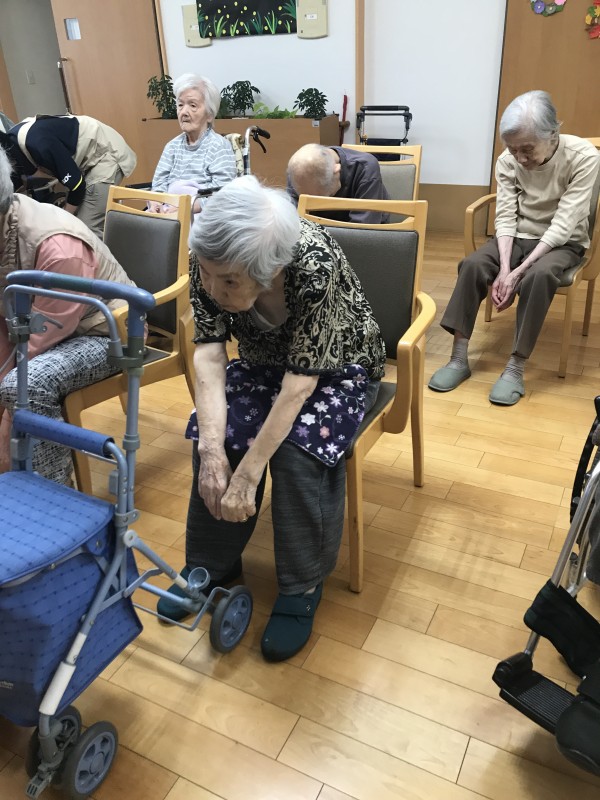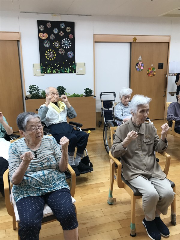 みんなであっちひねり、こっちひねり、腕の上げ下げ、お腹をクルクルマッサージしています。手が空いた時にいつでも出来るといいですね!私も暇を見つけてはクルクルしてみたいと思います。皆様も是非トライしてみてください(^^)