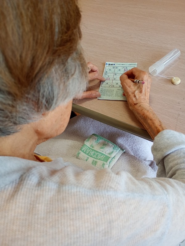 こちらのご利用者様は頭を使うことがお好きなようで、数独に取り組む姿をよく見かけます!!