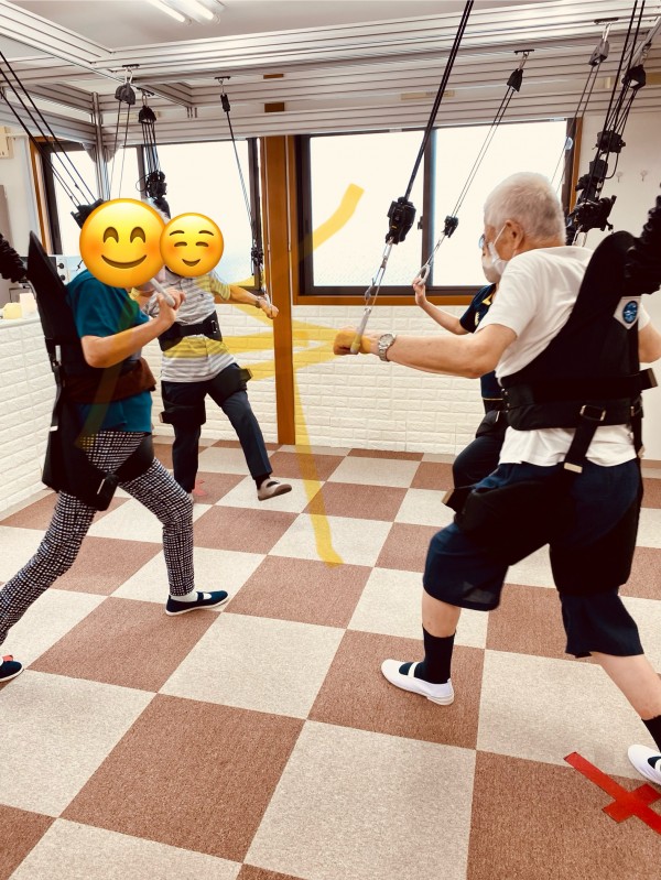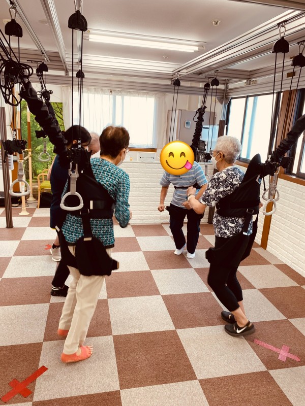 ほっとジム六郷では、椅子に座ったままのジョギングを行ったり、スペースワンダーでは身体にゴムで負荷をかけながらの歩行を行っています(^-^)