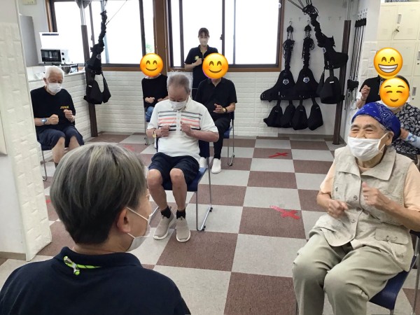 椅子でのジョギングも、初めは短い時間でも息が上がっていましたが、今では皆さん涼しい顔で行っています(^^)