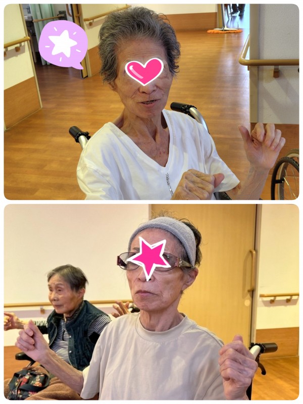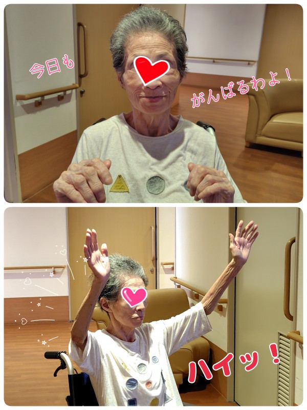リビングで皆様と一緒に体操!1日2回の体操を大変気に入って頂き、いつも楽しみにしてくださってます♪