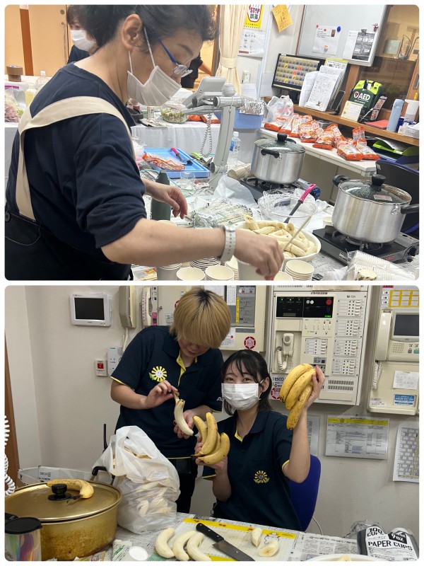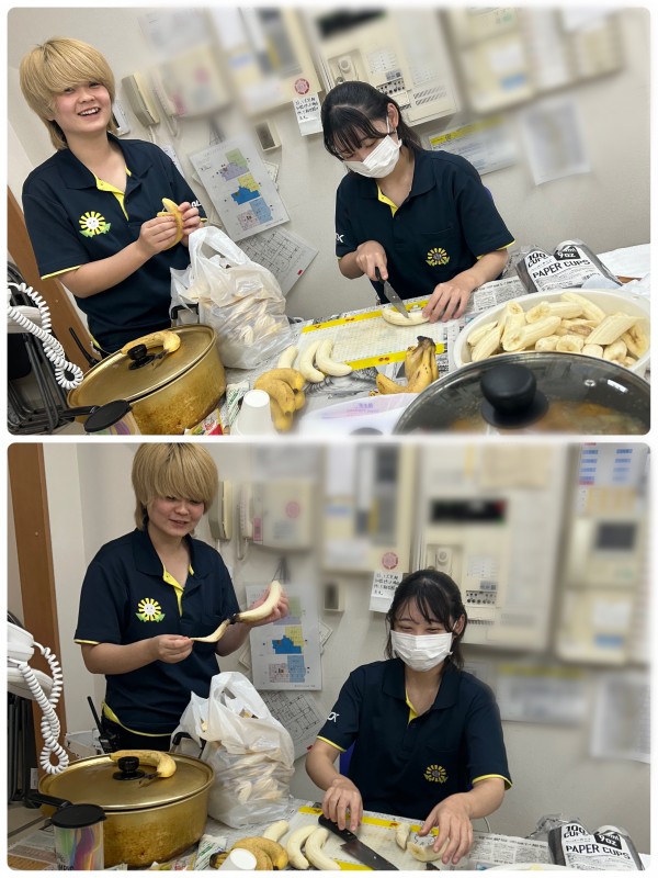 料理を全くしない水野、なんとかバナナを切りました!!(笑)