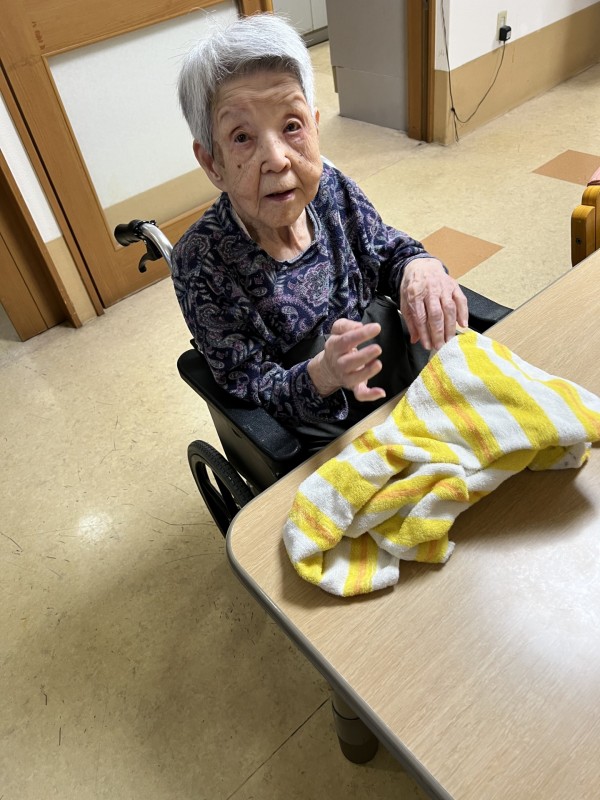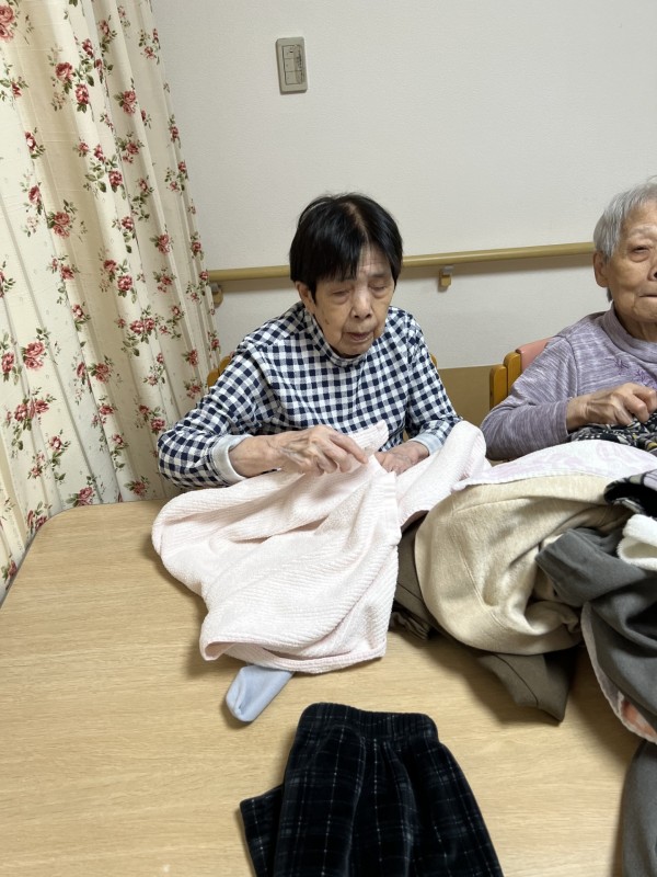 今回は1階の皆さんに洗濯物たたみのお手伝いをしていただきましたので、そのご様子をご覧ください。