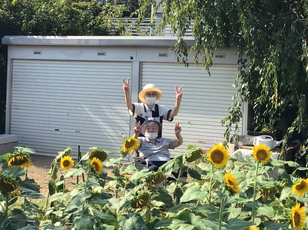 近くに向日葵畑があったとはびっくりでしたが、移動時間も少なくたくさんの向日葵が見られて利用者様にも喜んでいただけました。