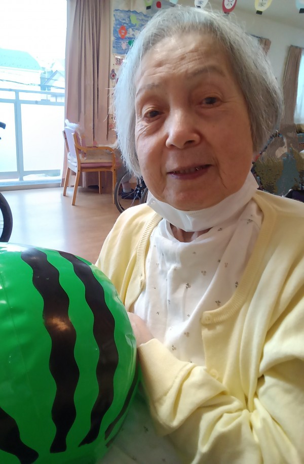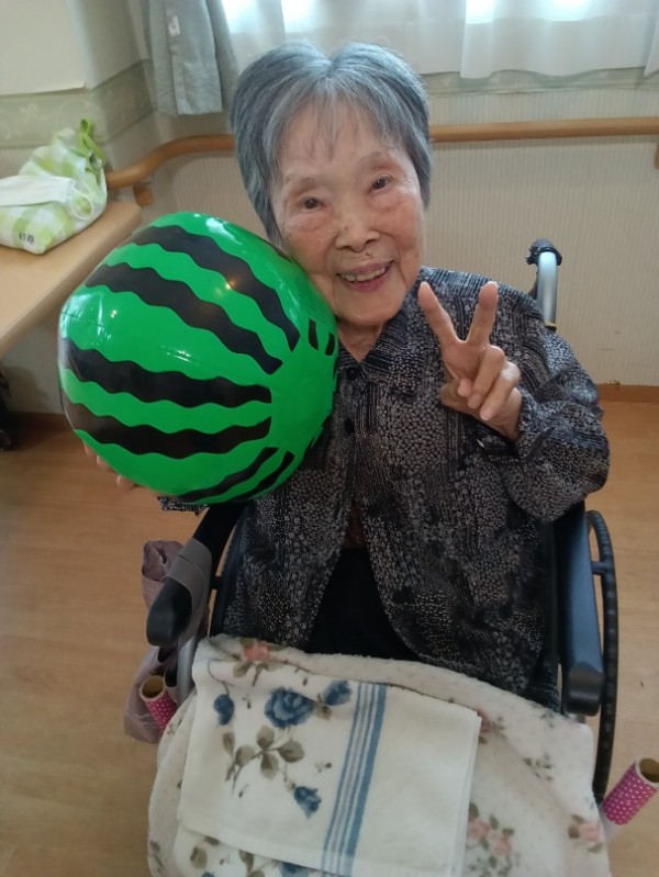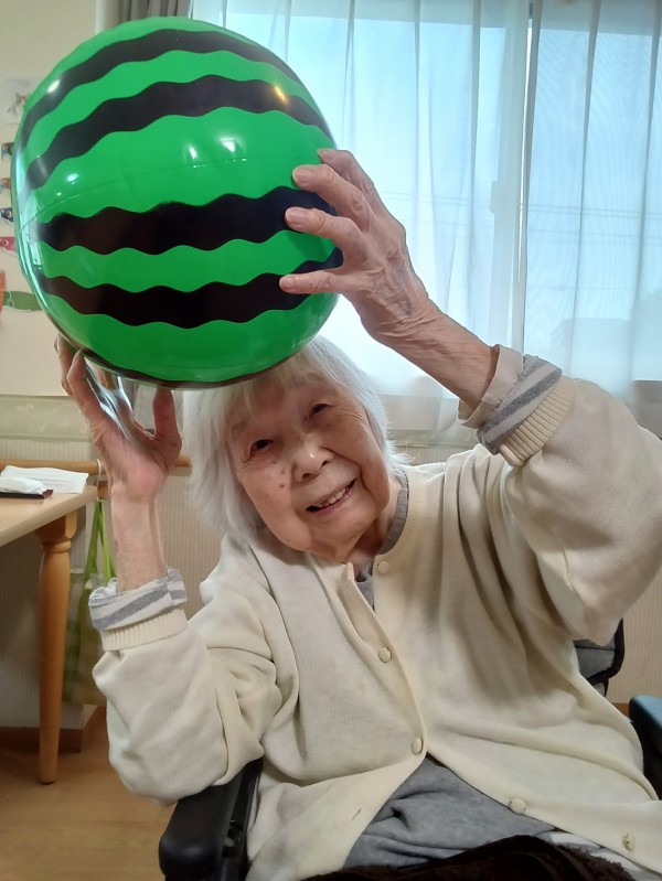 スイカボールを持って「ハイチーズ」。いい笑顔ですね~。