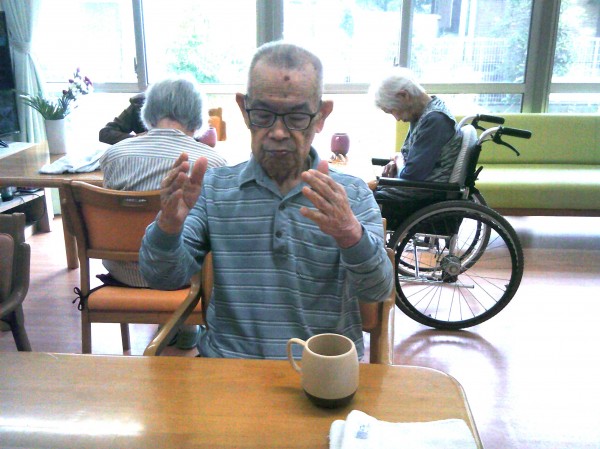 食べたいね? 今度食べましょうね? とお伝えすると嬉しそうでした(*^_^*) お一人だけ腕の運動をされています。