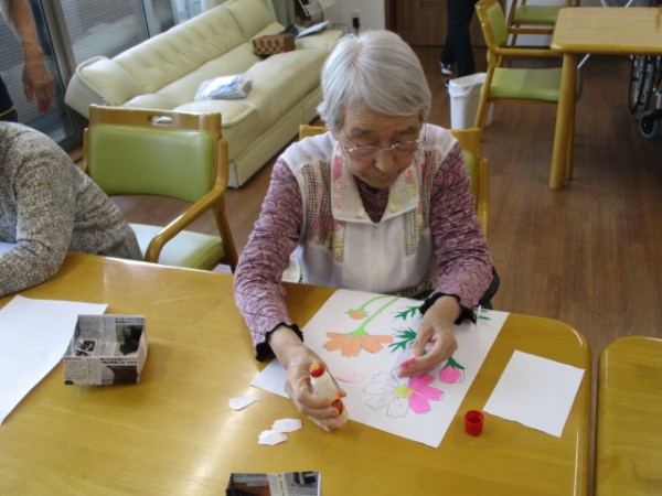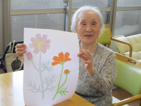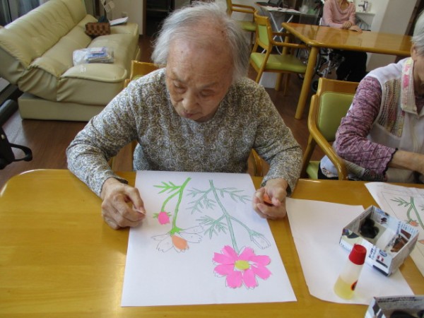 今日はコスモスの塗り絵を行いました。 そのご様子をお知らせいたします!