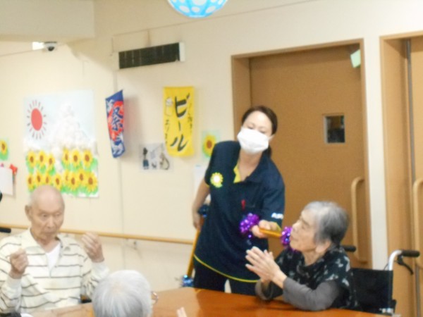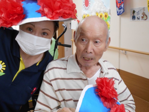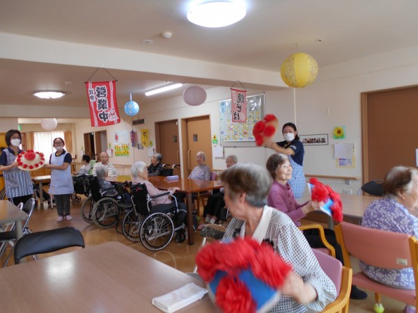 午前中は花笠で写真を撮ったりしながら、午後の盆踊りに向けてスタッフとご利用者様で踊りの練習を行いましたあー♪♪