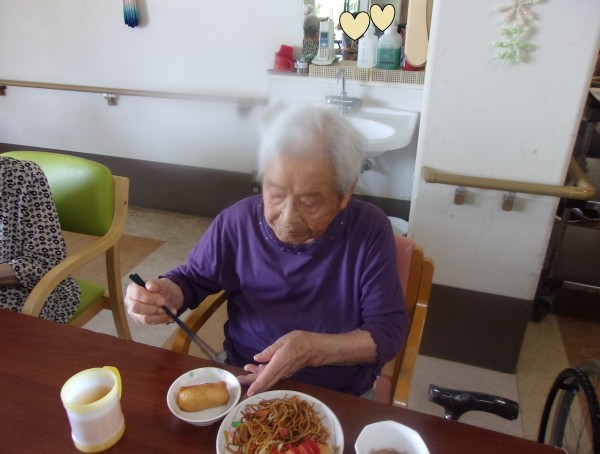 野菜いっぱいの焼きそばに、ホーム長お手製のお稲荷さん(*´ω`*)フフフ
