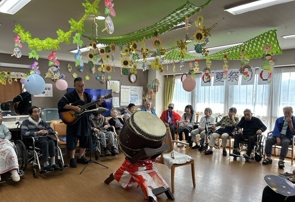 お祭りの最後はホーム長のギターによる「大合唱」です♪