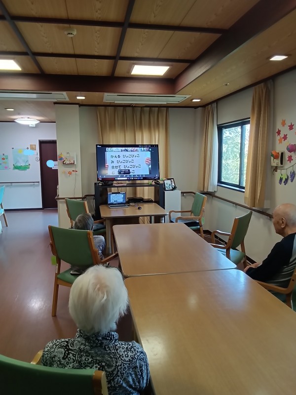 今回はリモートヨガというもので、ヨガの先生がとても丁寧に分かりやすく指導してくださるので入居者様、スタッフも