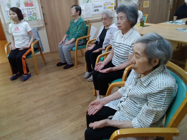 呼吸にあわせて体を軽く動かされた後、口腔ヨガに参加されました。