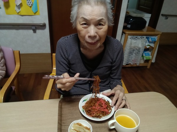 今回は昼食に焼きそばを召し上がっていただきました。ご利用者様からは、「夏祭りの思い出が懐かしいわあ(#^^#)」